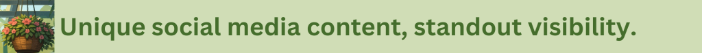 The Social Media Greenhouse helps businesses cultivate a strong and engaging online presence. With a tailored approach and creative strategies, I craft personalized content that highlights your brand’s individuality. As your go-to custom social media content creator, I will sprinkle creativity & information like pollen across your platforms and make your brand bloom. My eclectic skillset includes photography, content creation, deciphering cryptic social media algorithms & crafting witty captions (oh, and making peace with stubborn houseplants). My mission is to make social media feel authentic, approachable, and impactful, helping you connect with your audience in a way that’s both fun and meaningful. So, if you’re ready, let’s grow something great together.